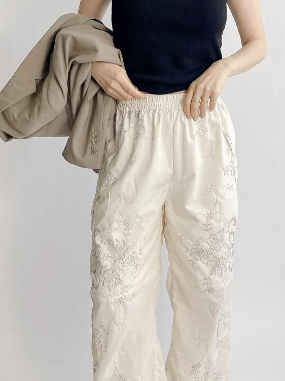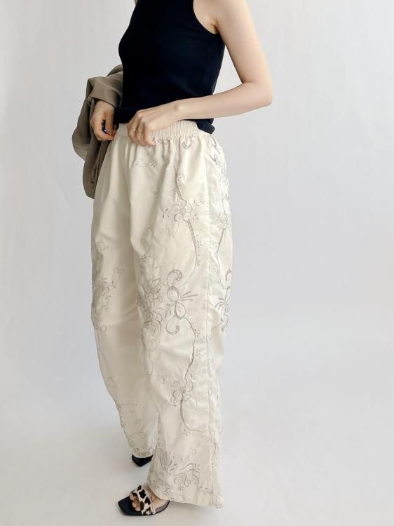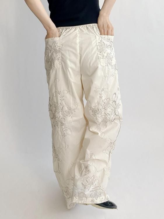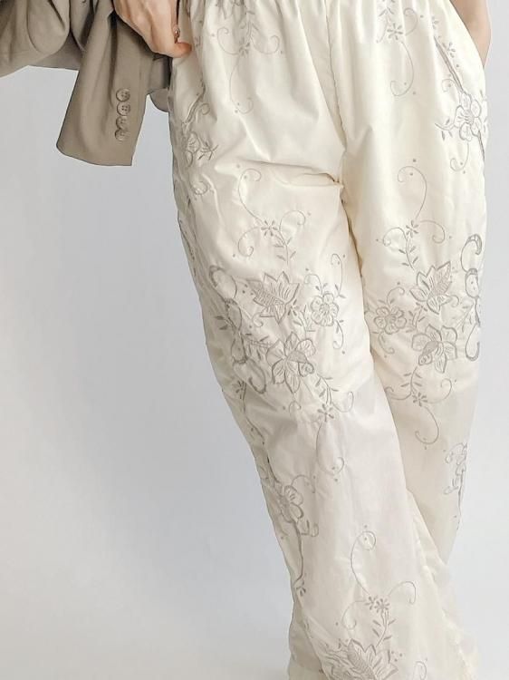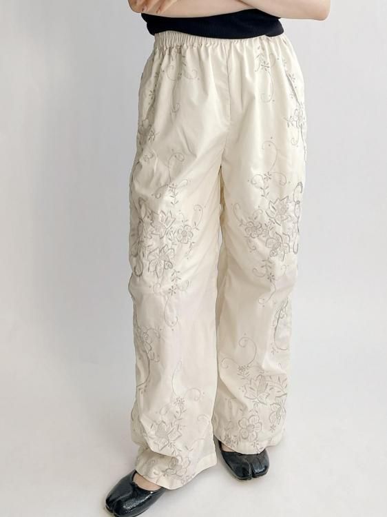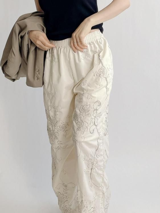 "Upcycle" VINTAGE embroidery light fabric easy pants