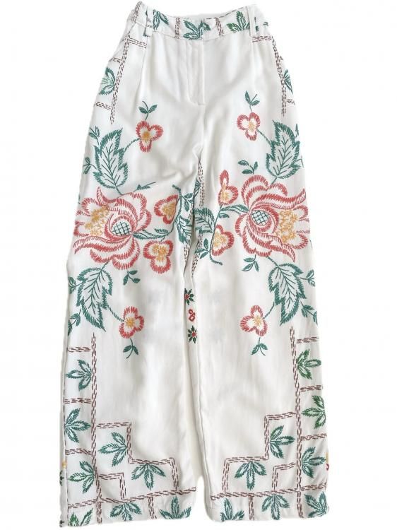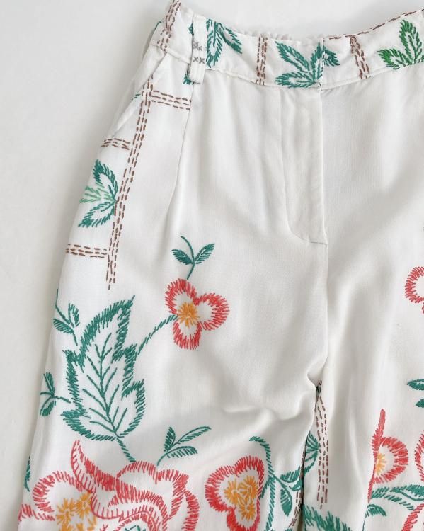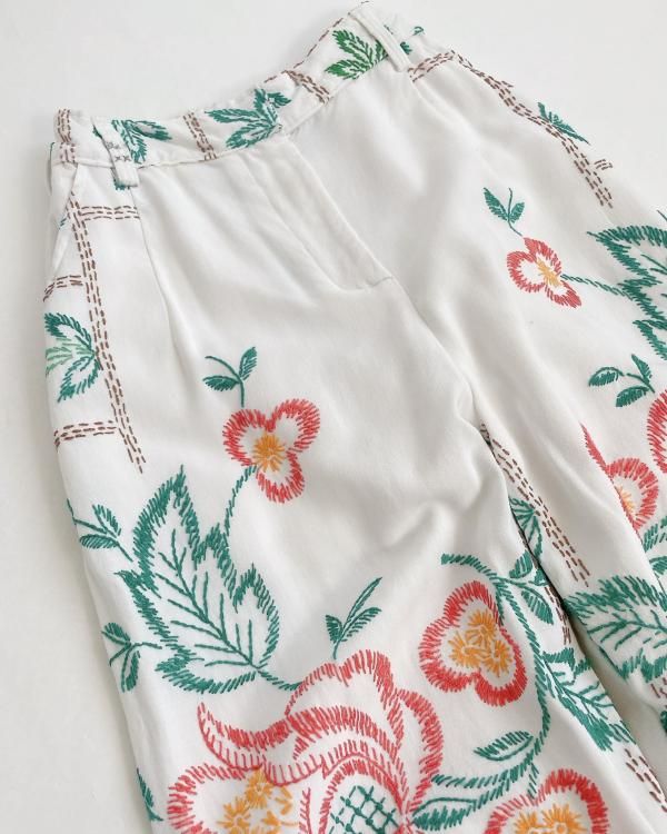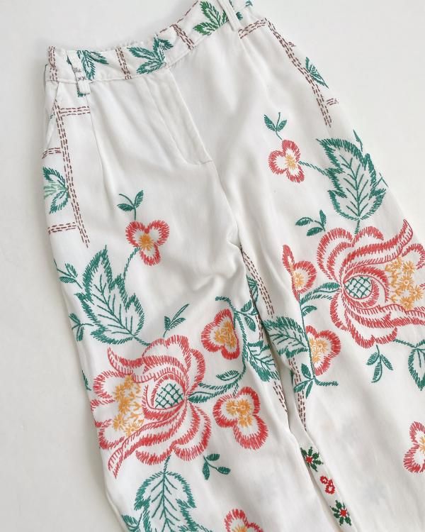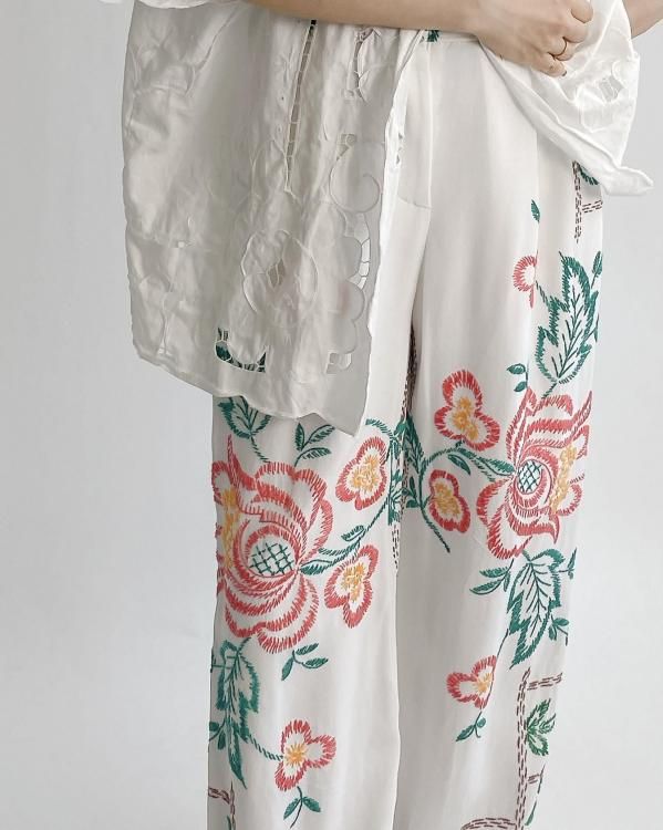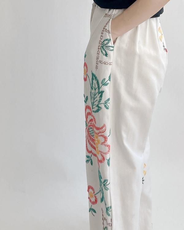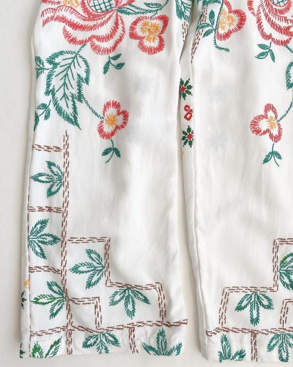"Upcycle" VINTAGE fabric Embroidered easy pants -Red Flower-
