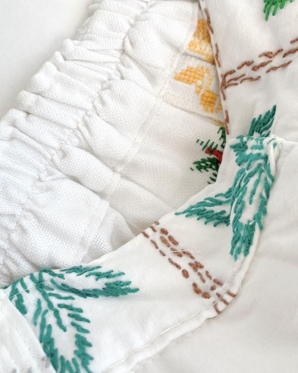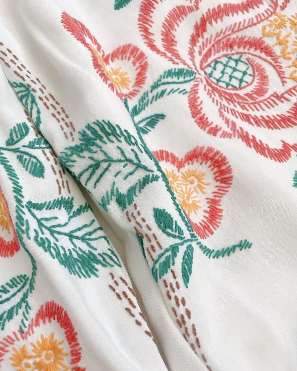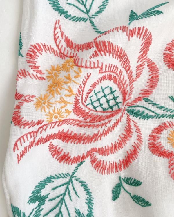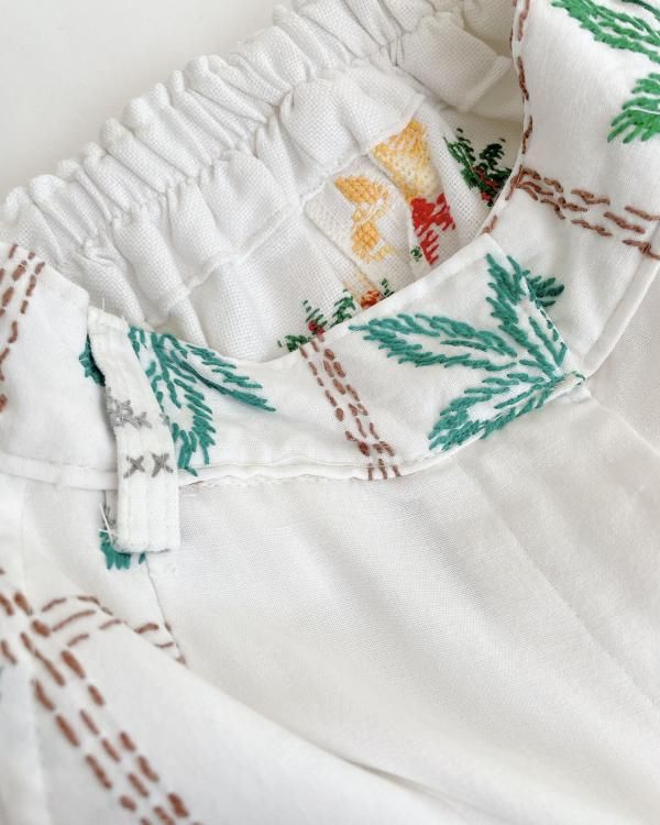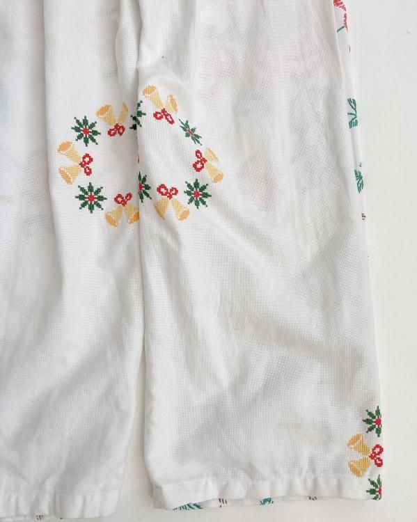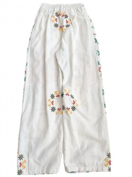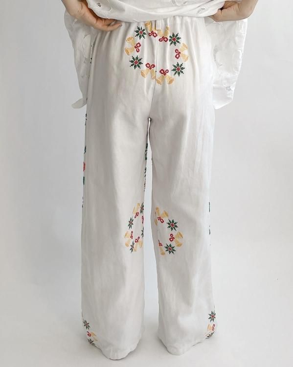 "Upcycle" VINTAGE fabric Embroidered easy pants -Red Flower-