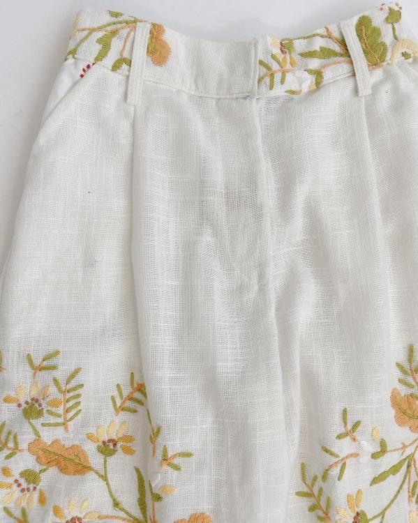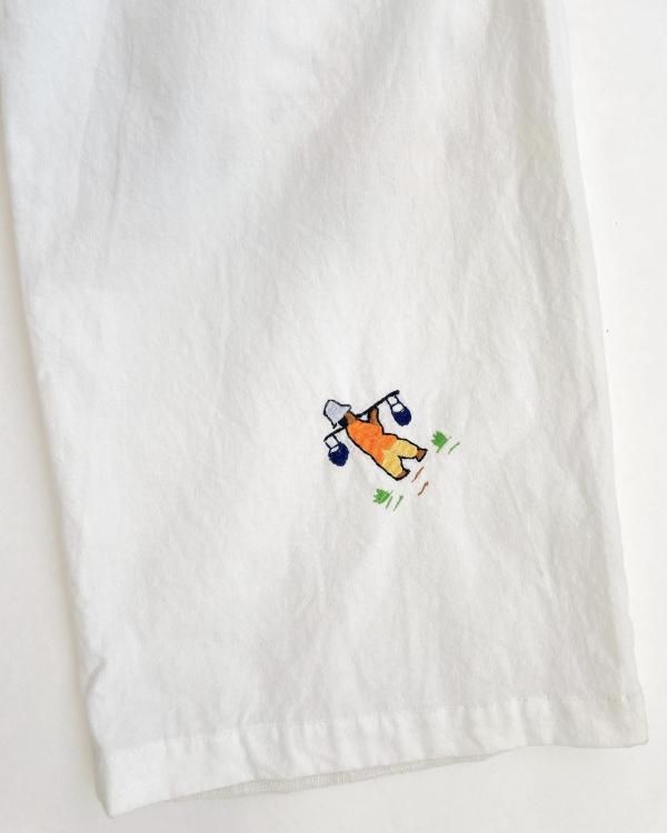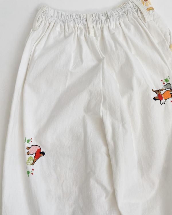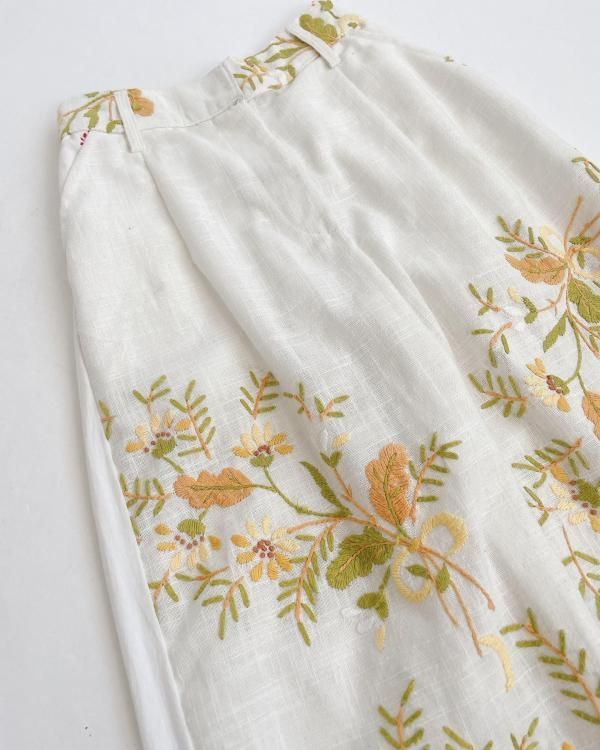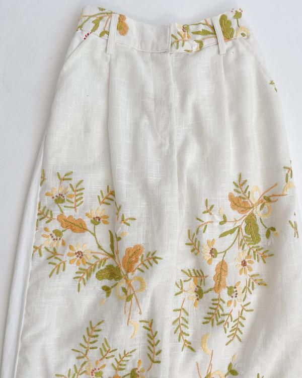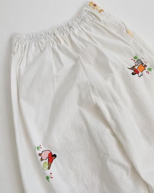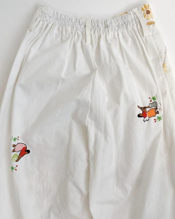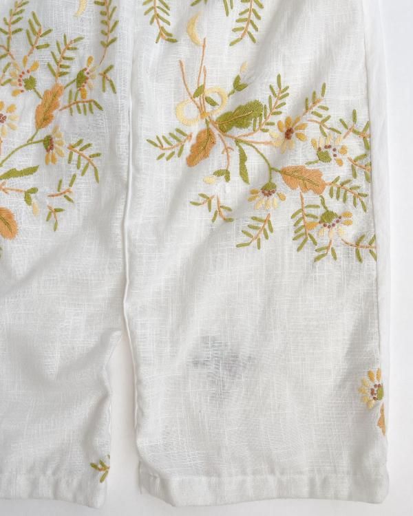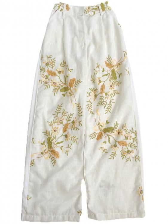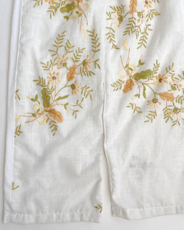 "Upcycle" VINTAGE fabric Embroidered easy pants -Yellow flowers and life-