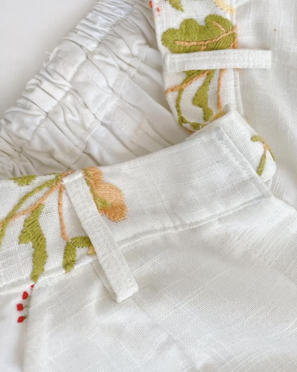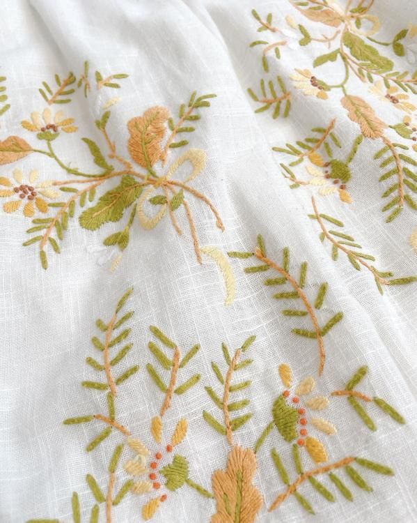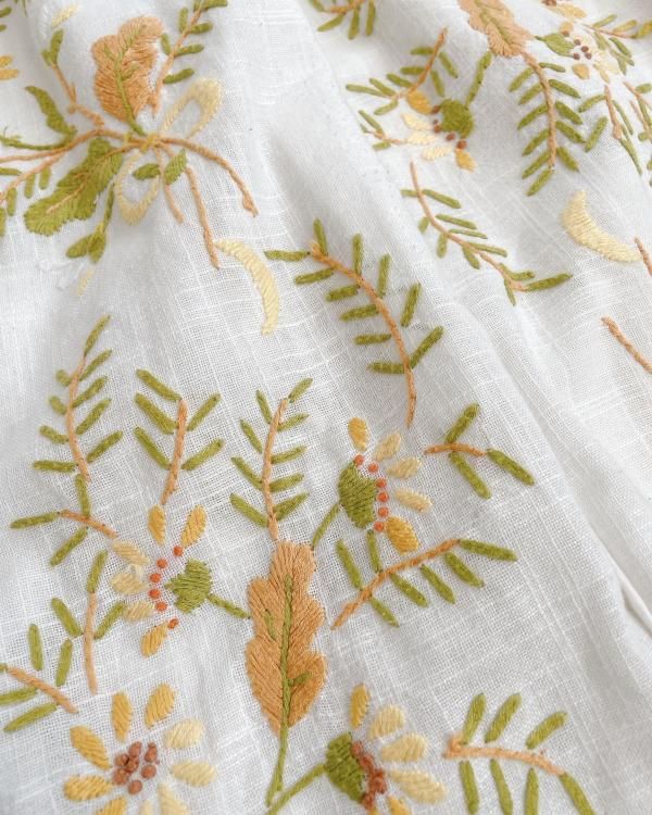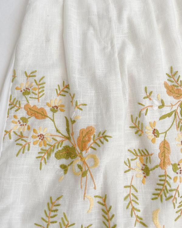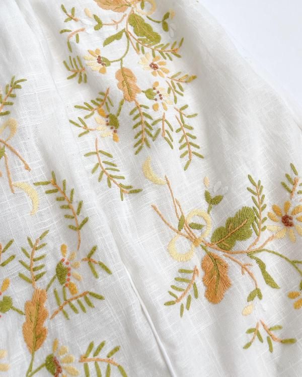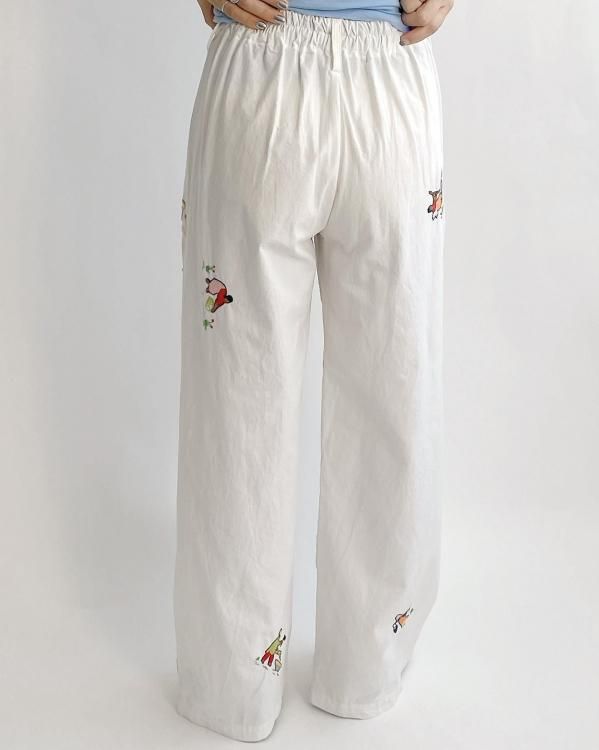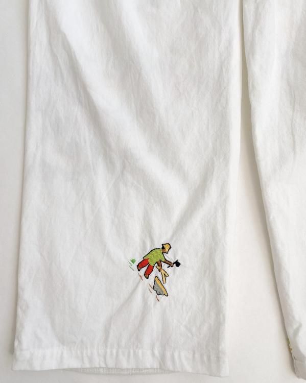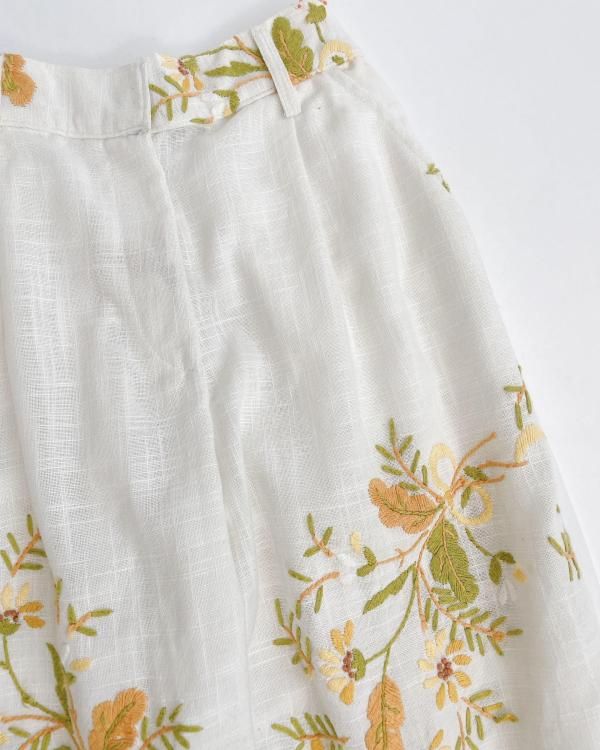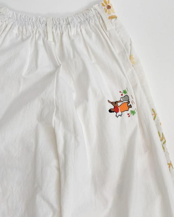 "Upcycle" VINTAGE fabric Embroidered easy pants -Yellow flowers and life-