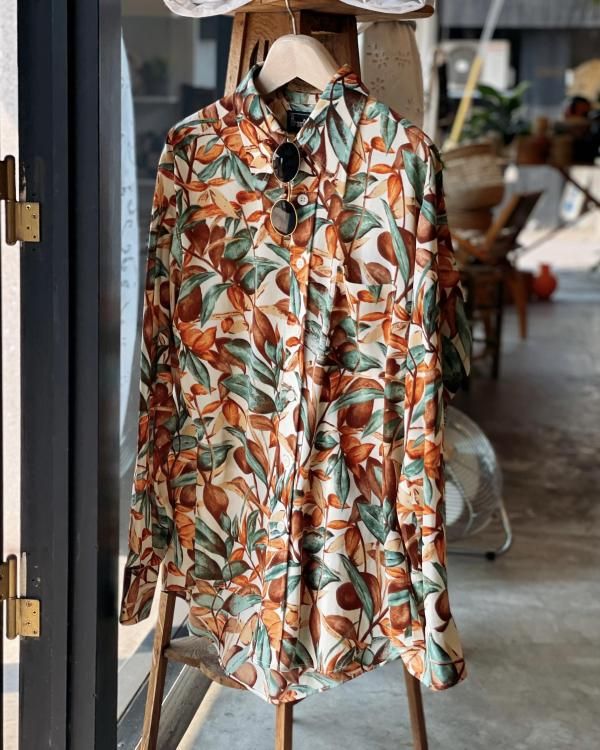 70’s VINTAGE long-sleeved shirt "plant pattern"