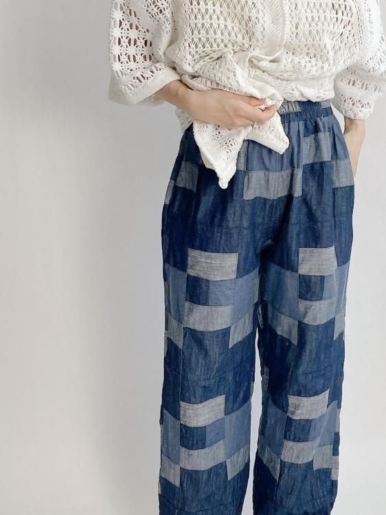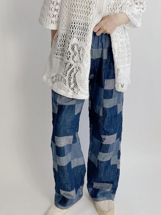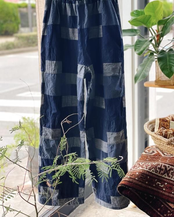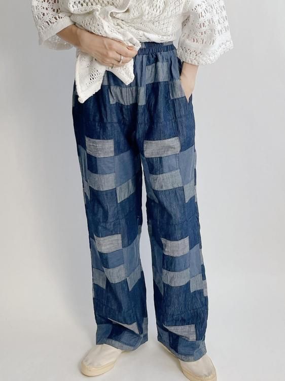 "Upcycle" VINTAGE fabric easy pants -denim-