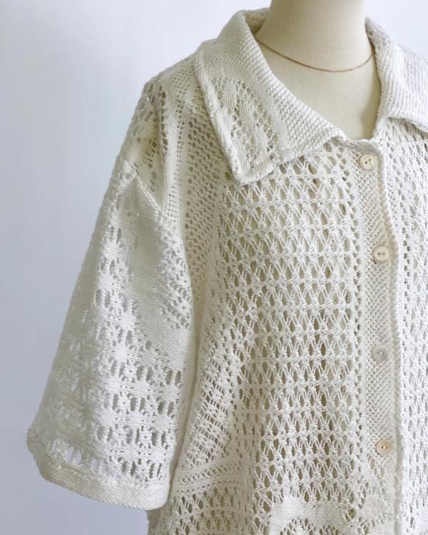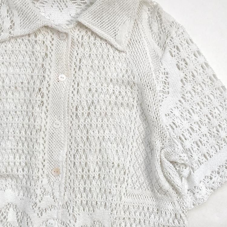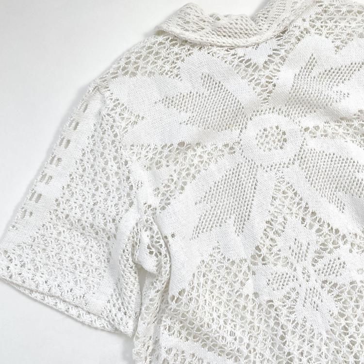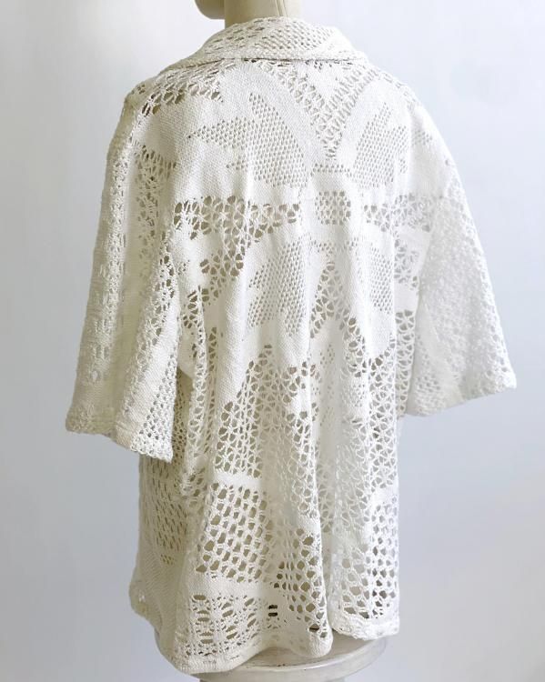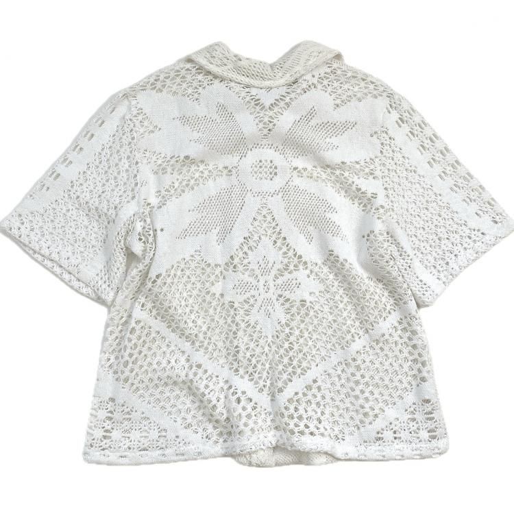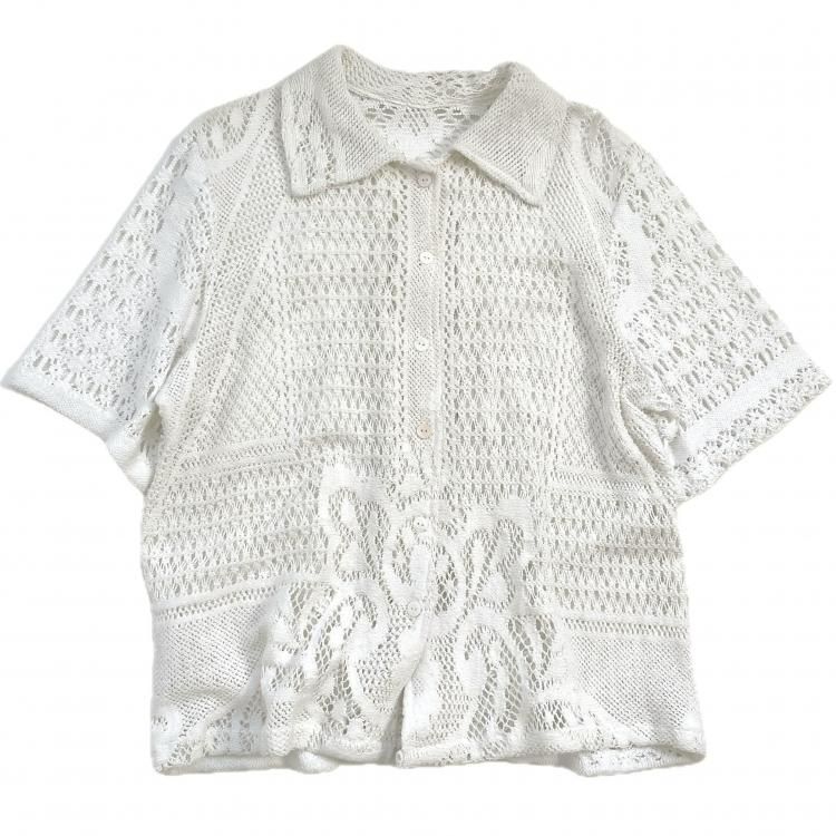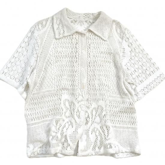 "Upcycle" VINTAGE lace fabric short-sleeved shirt -white-