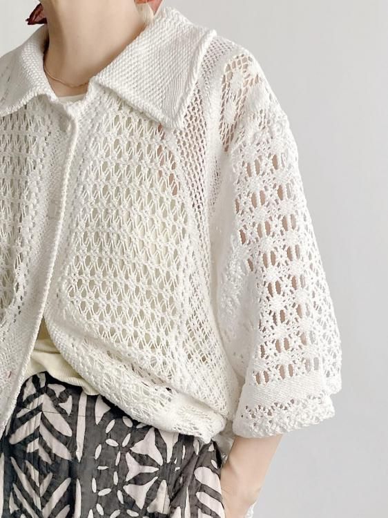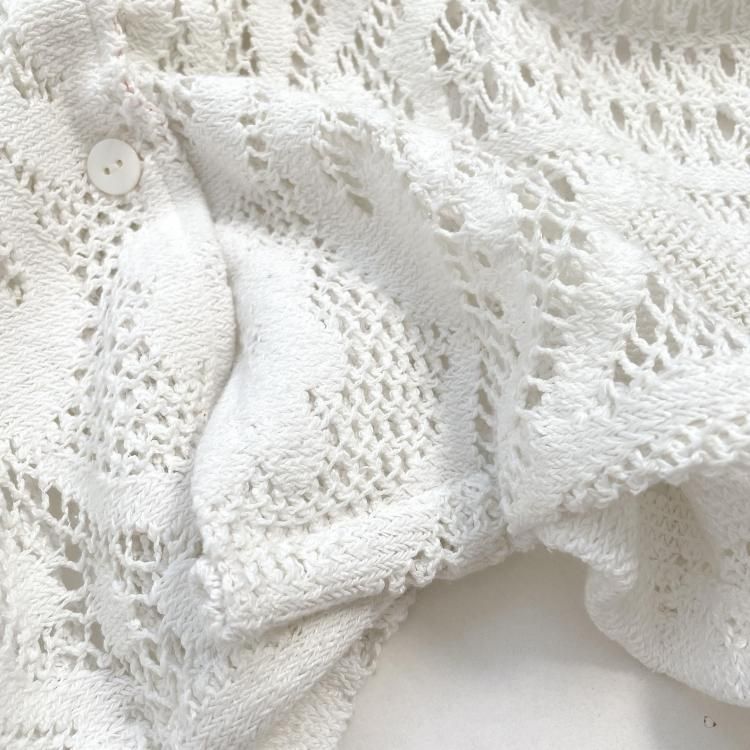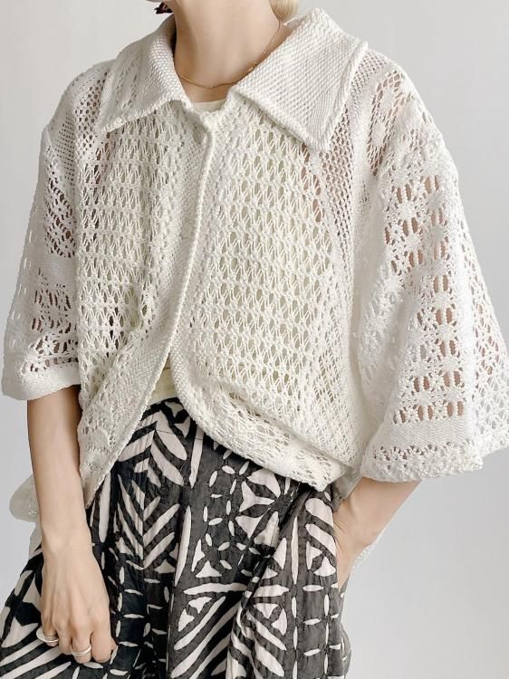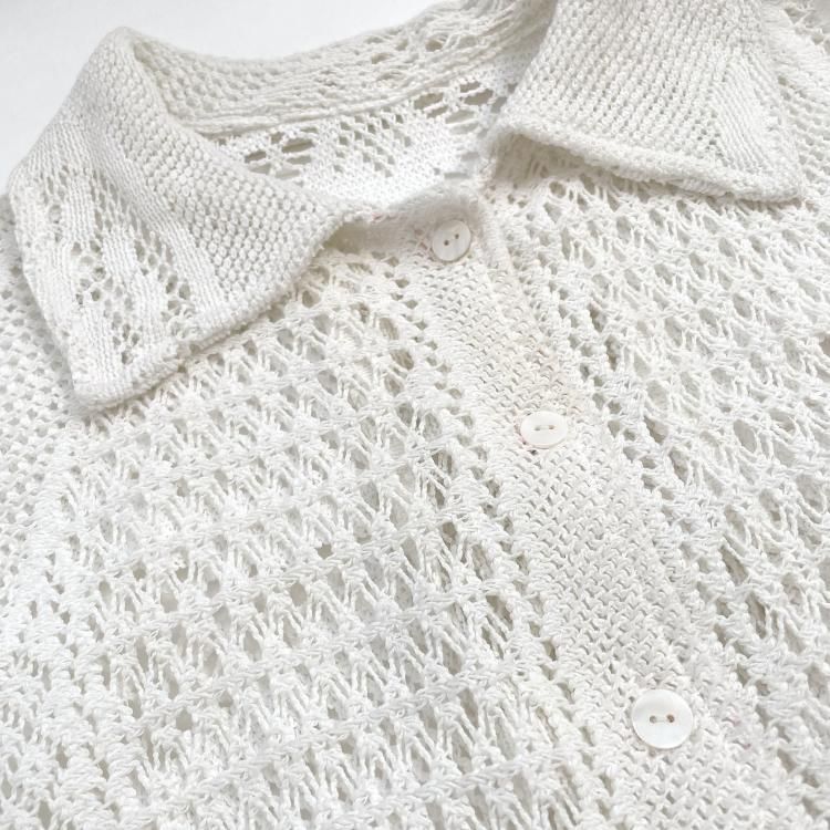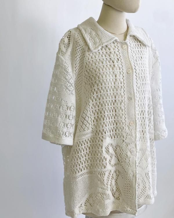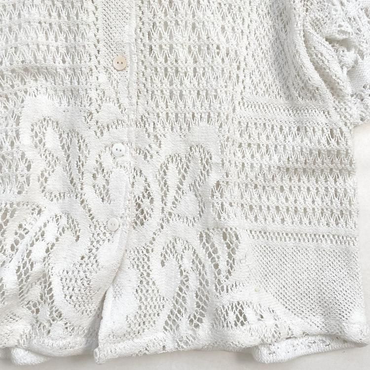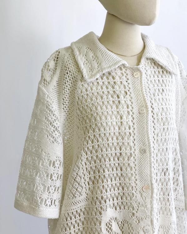 "Upcycle" VINTAGE lace fabric short-sleeved shirt -white-