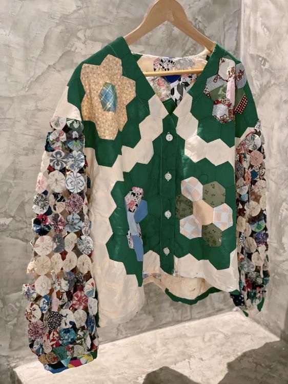 さまざまな模様のパッチワークが施され、世界に一枚のアップサイクルシリーズです。