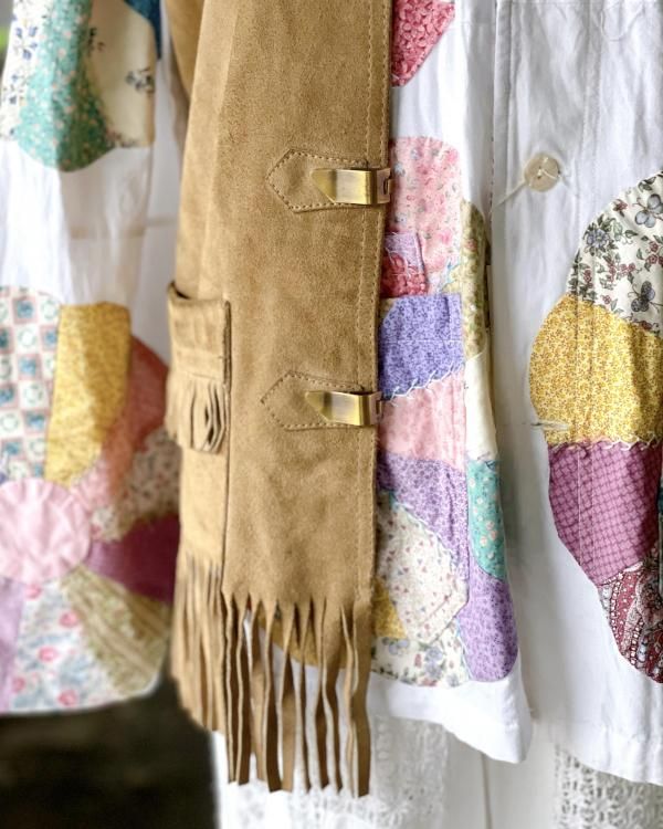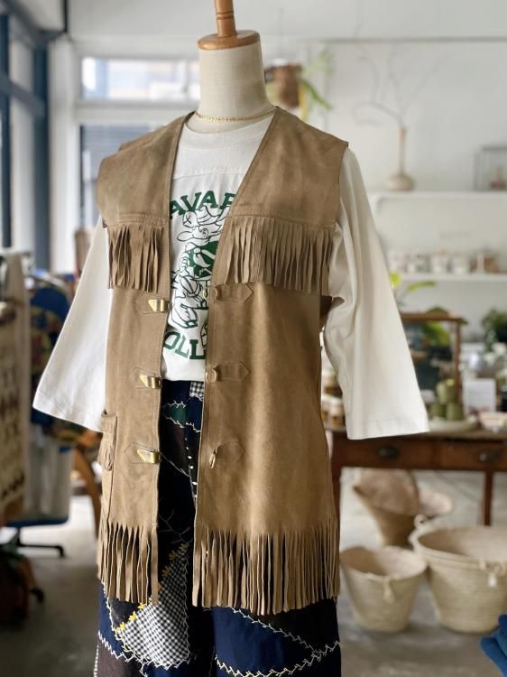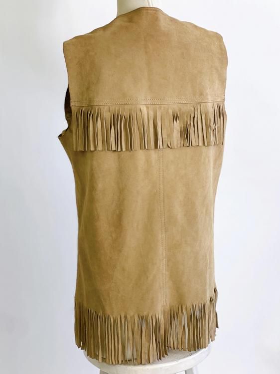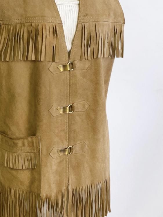 VINTAGE Suede Leather fringe vest "Brass strap"