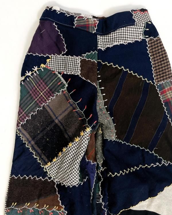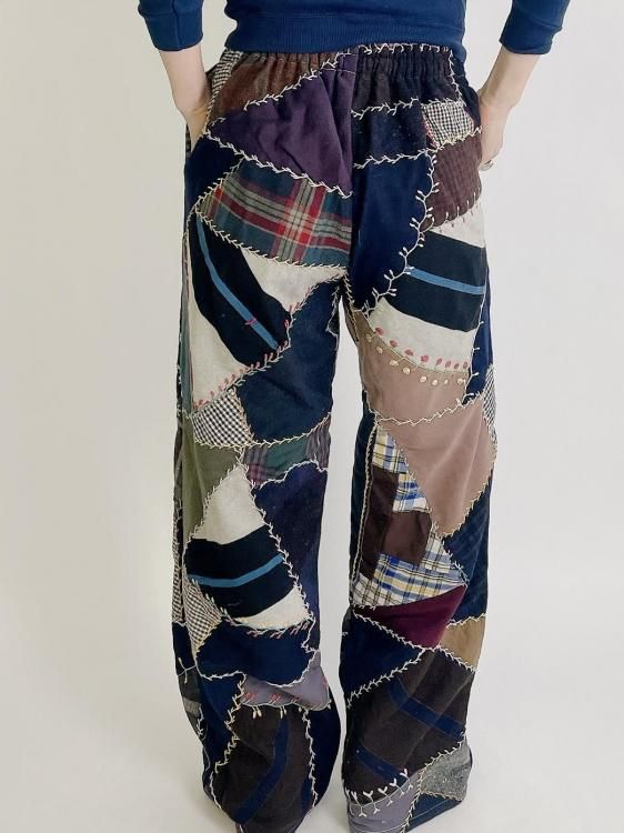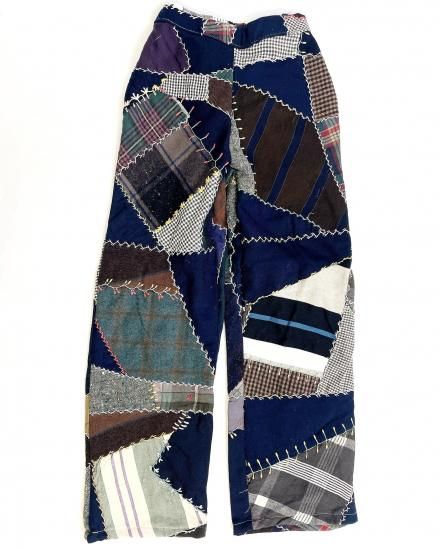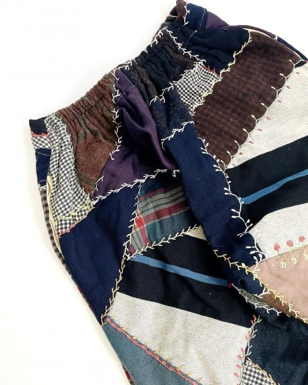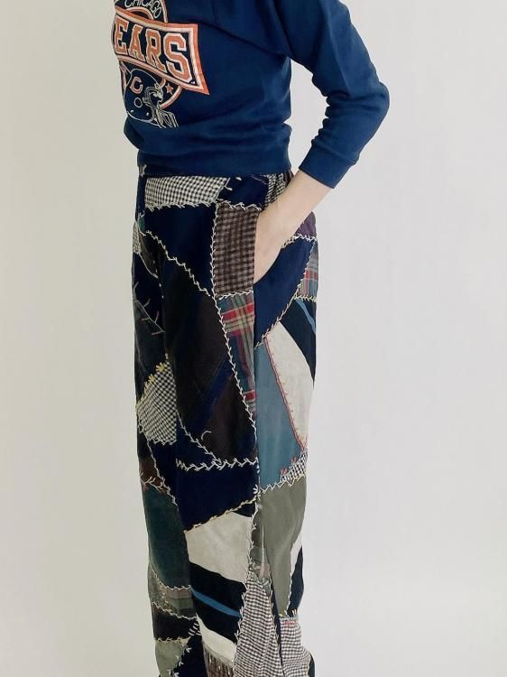 "Upcycle" VINTAGE patchwork fabric easy pants -thick stitching-