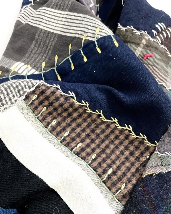 さまざまな模様のパッチワークが施され、世界に一枚のアップサイクルシリーズです。