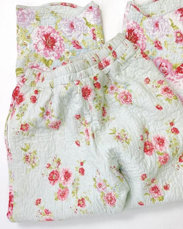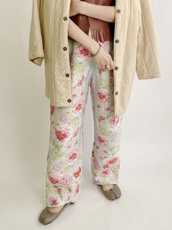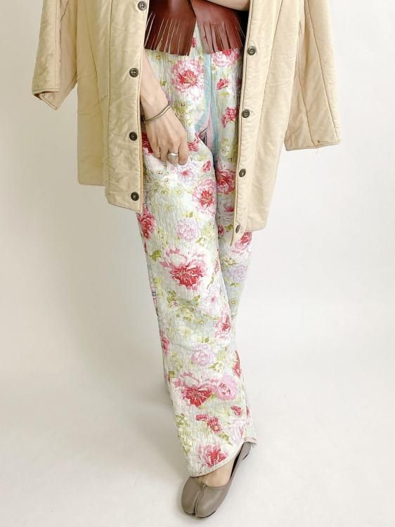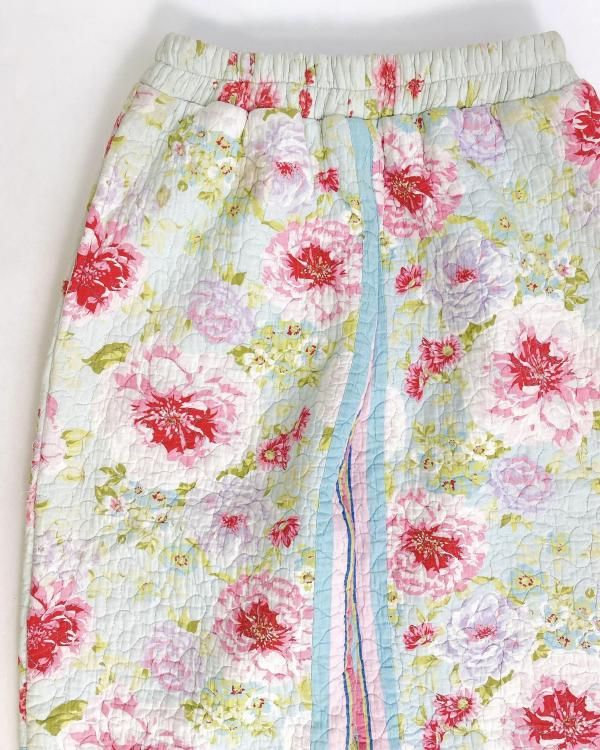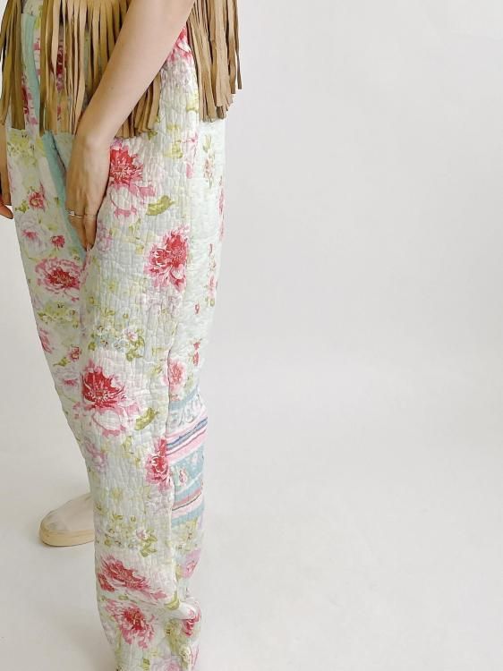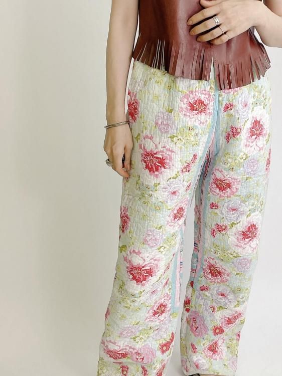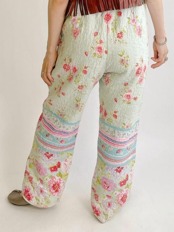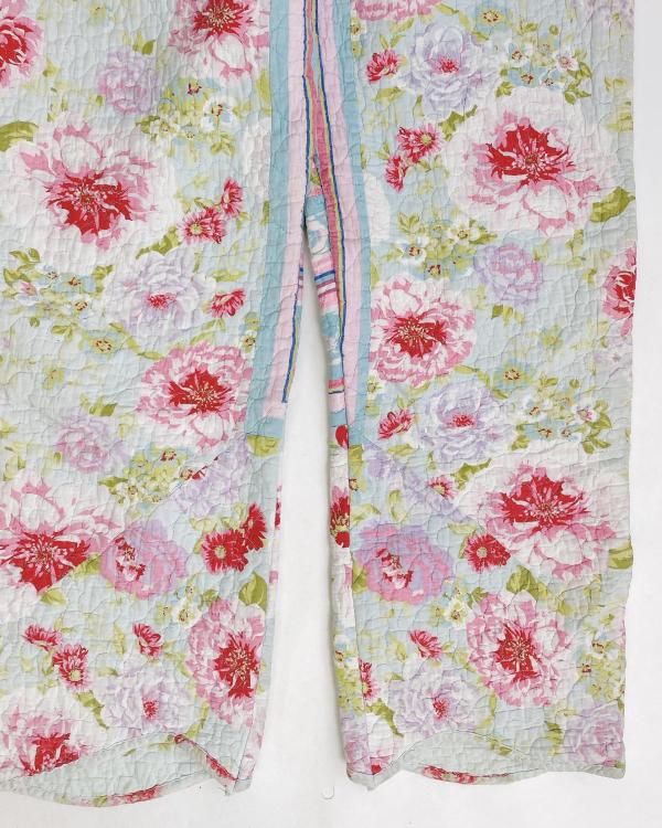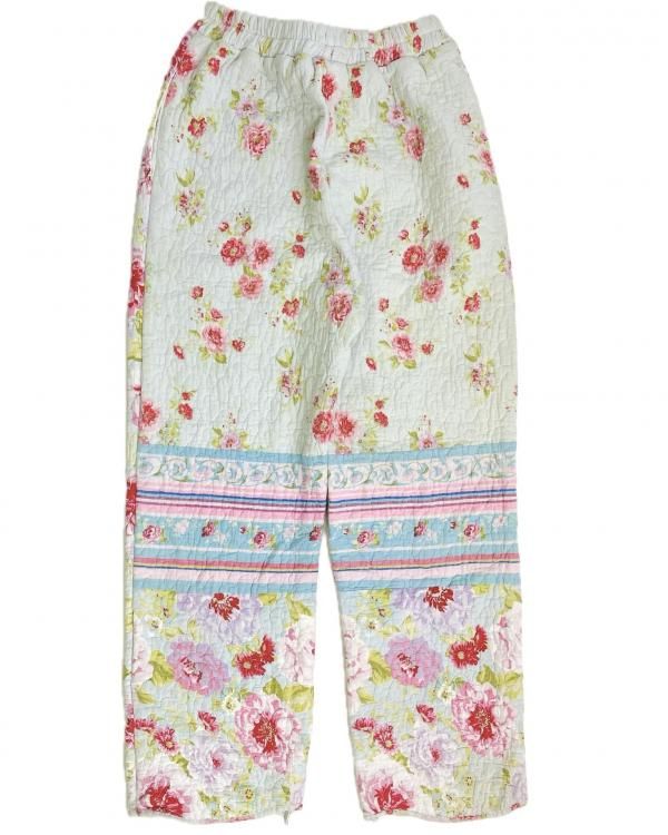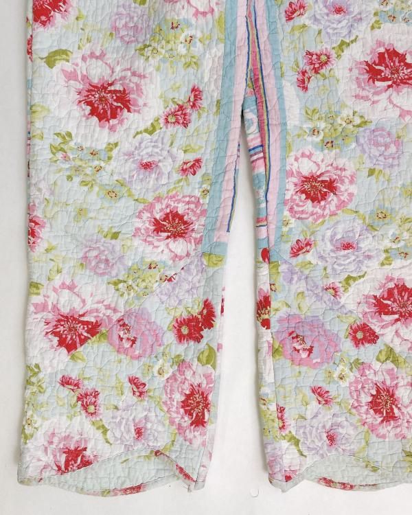 "Upcycle" VINTAGE quilt fabric easy pants -Flower-