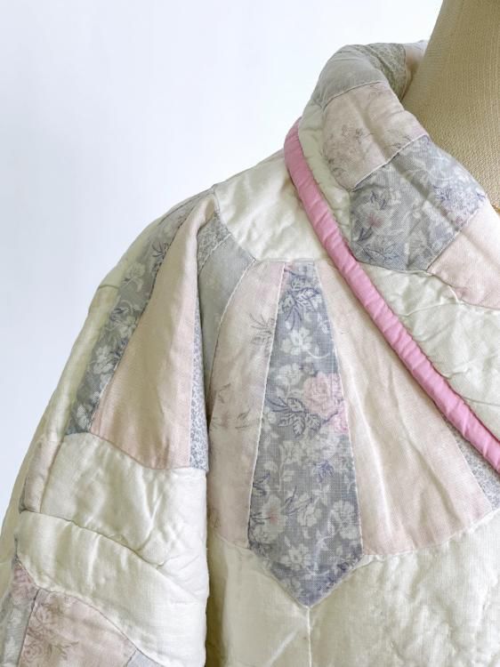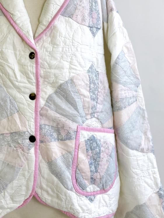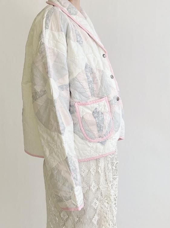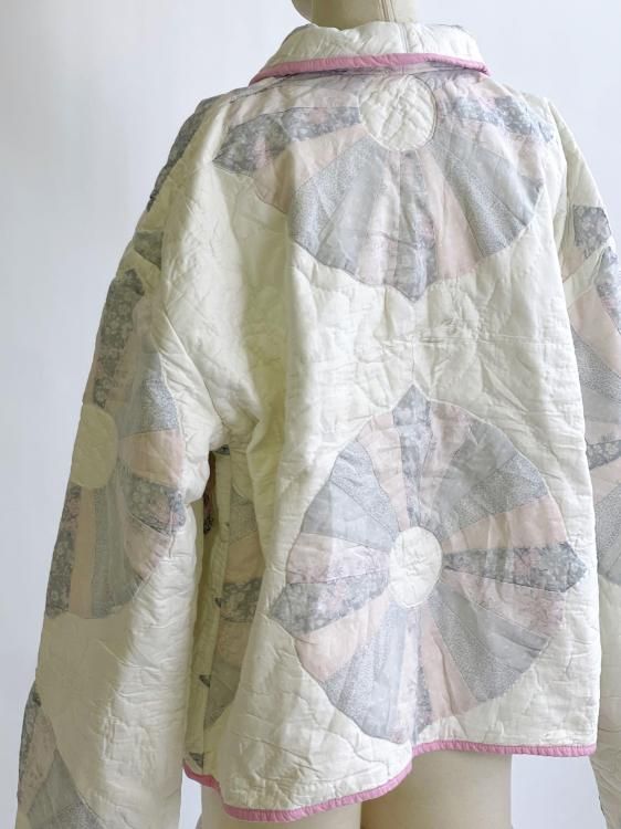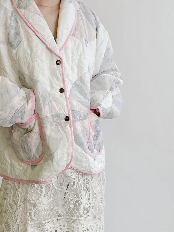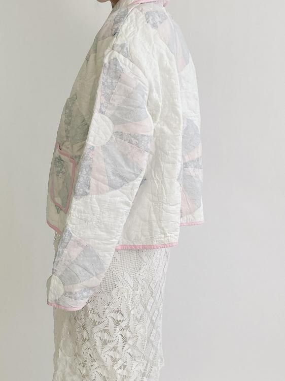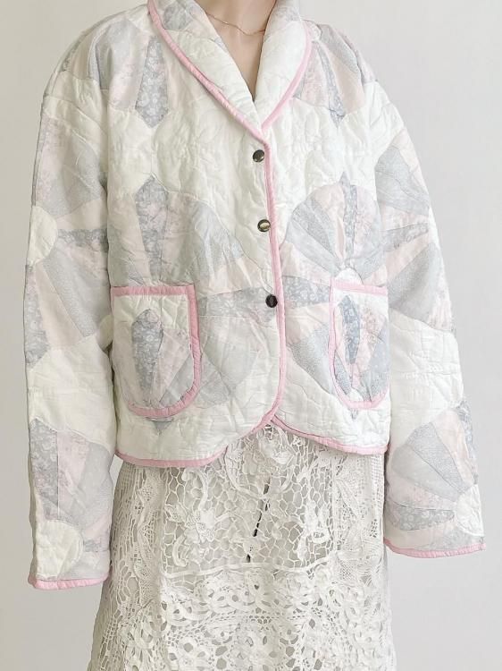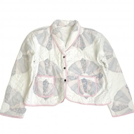 "Upcycle" VINTAGE patchwork fabric short jacket -Pink piping-
