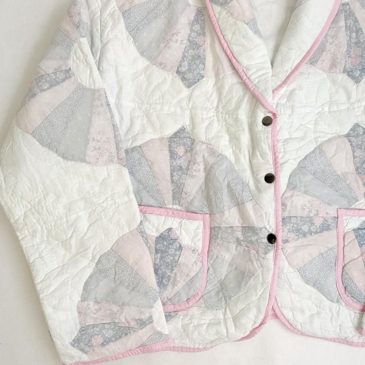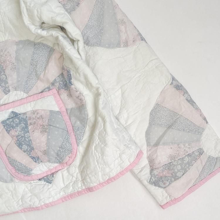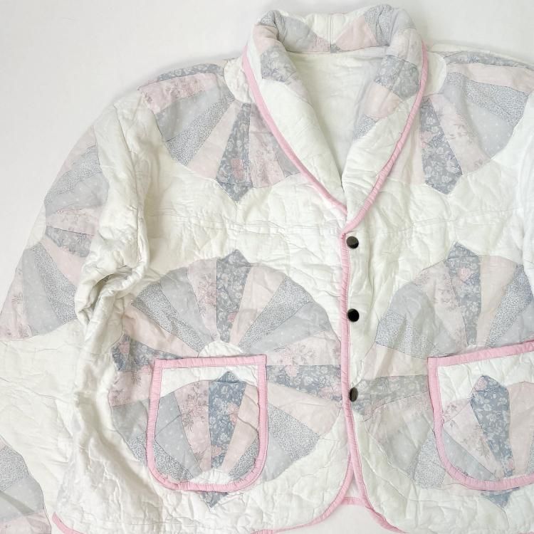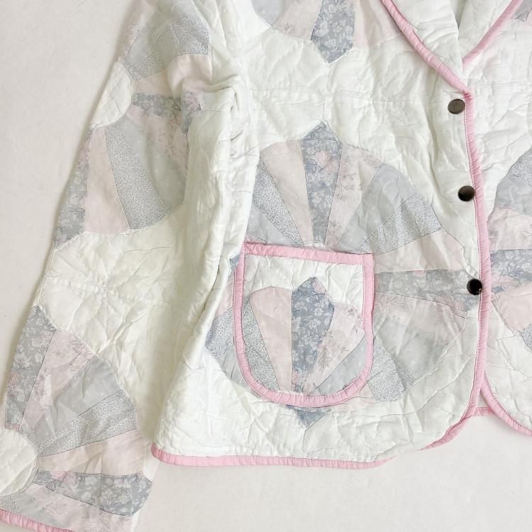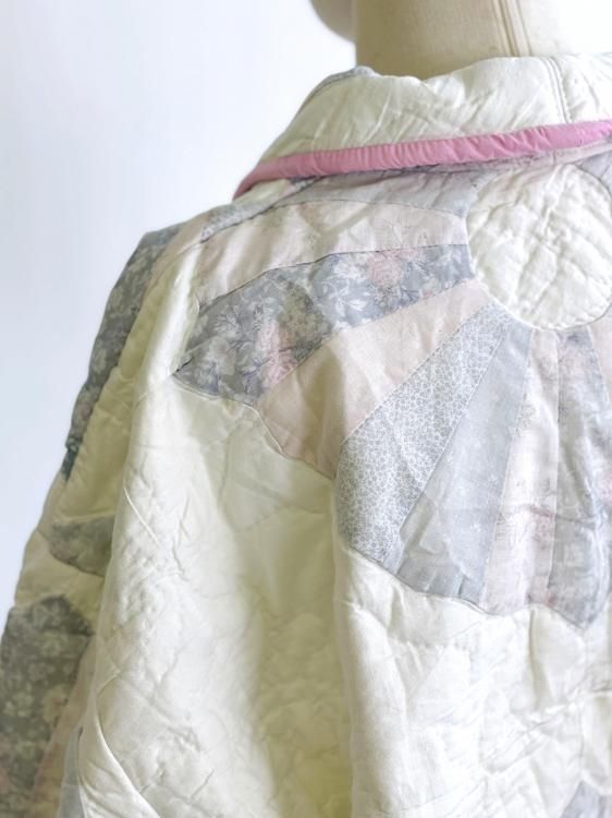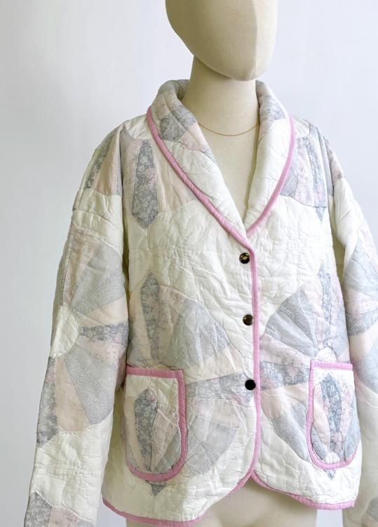 "Upcycle" VINTAGE patchwork fabric short jacket -Pink piping-