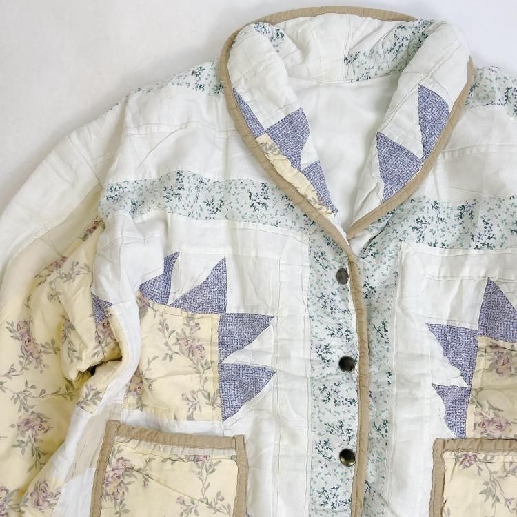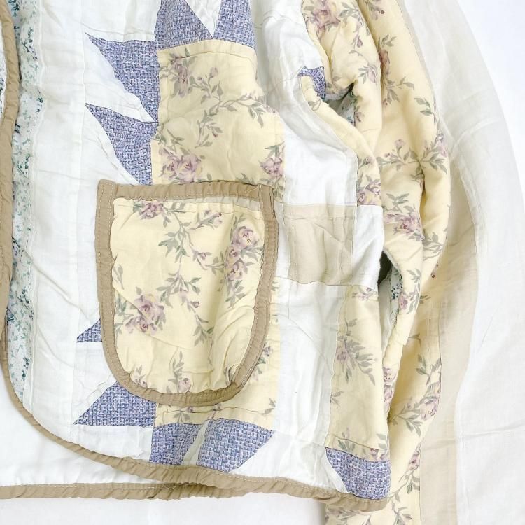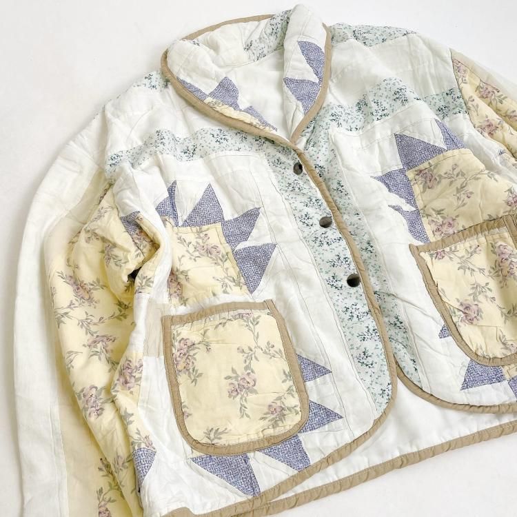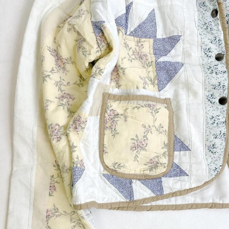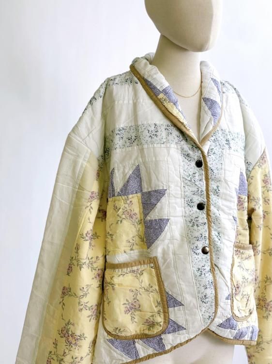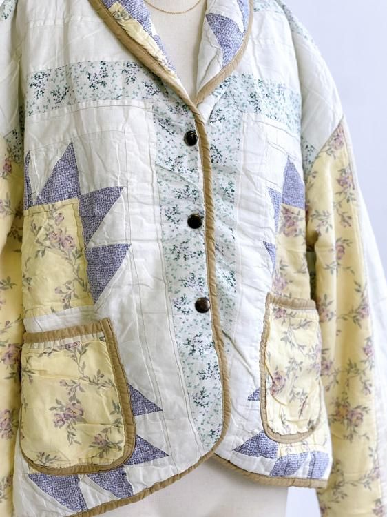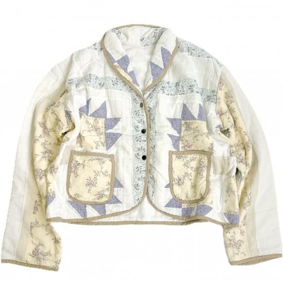 "Upcycle" VINTAGE patchwork fabric short jacket -Mustard piping-