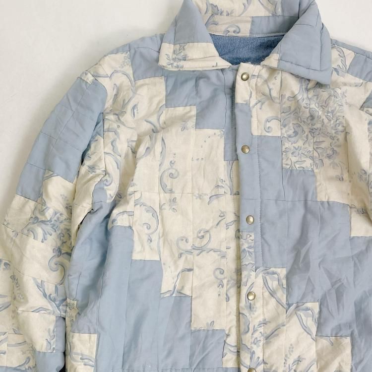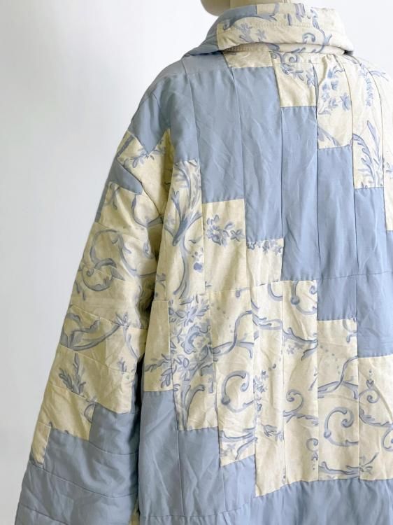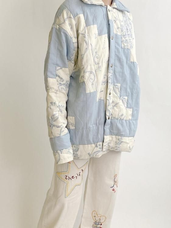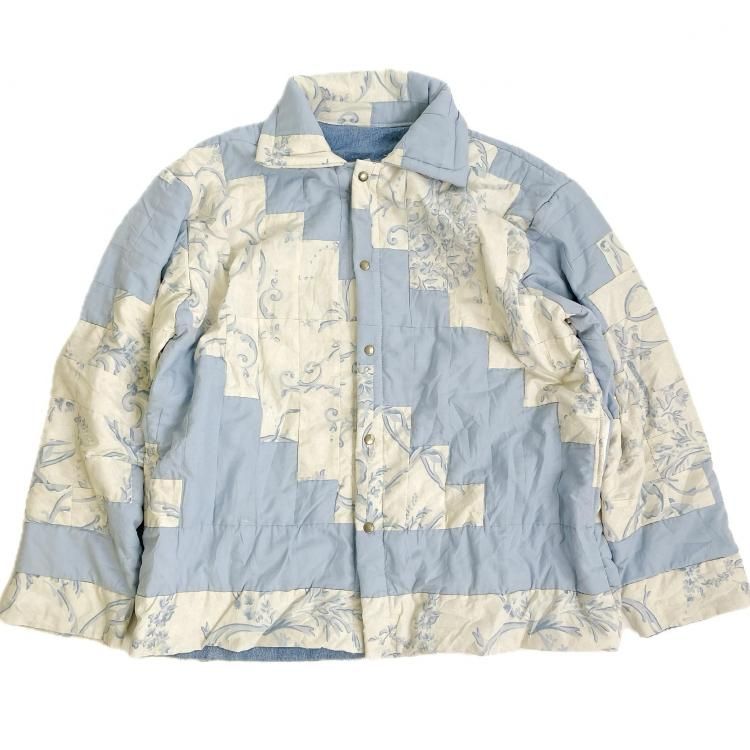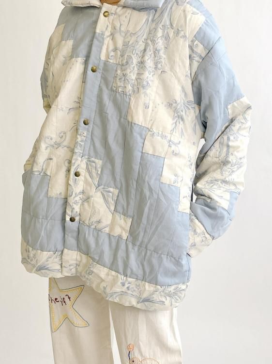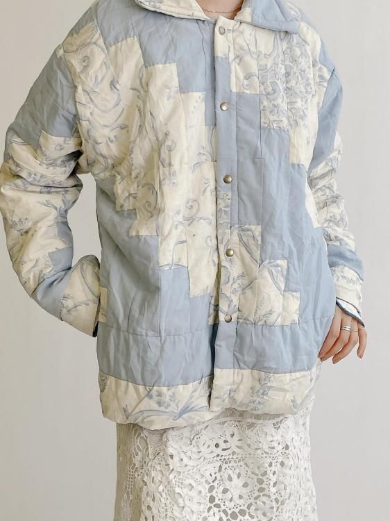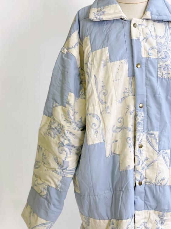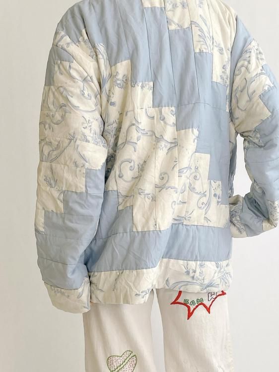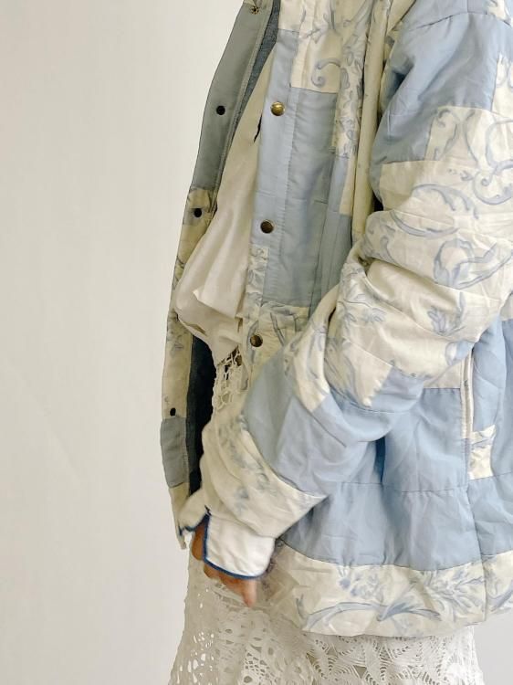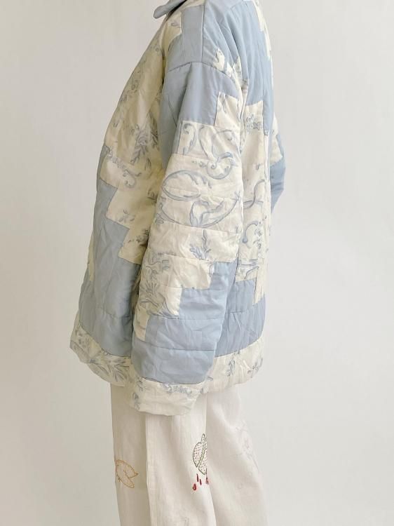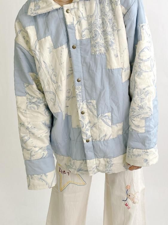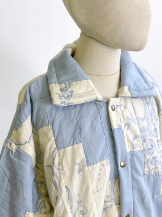 "Upcycle" VINTAGE patchwork fabric jacket -Light blue pattern-