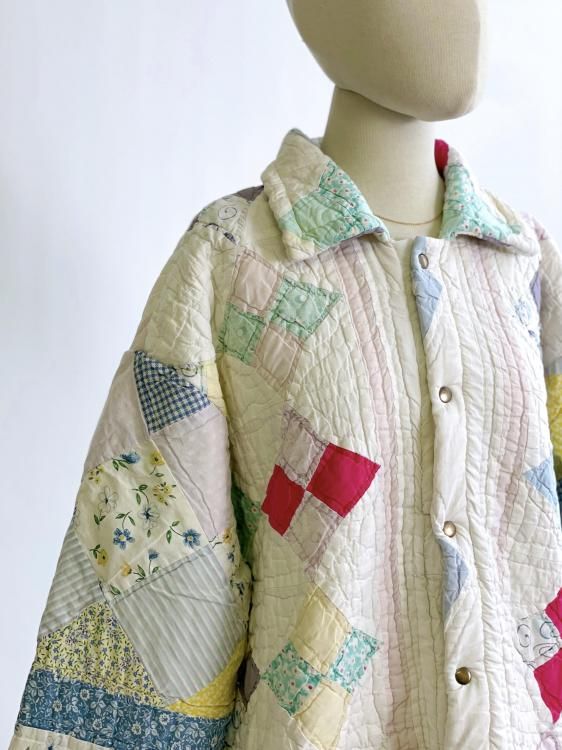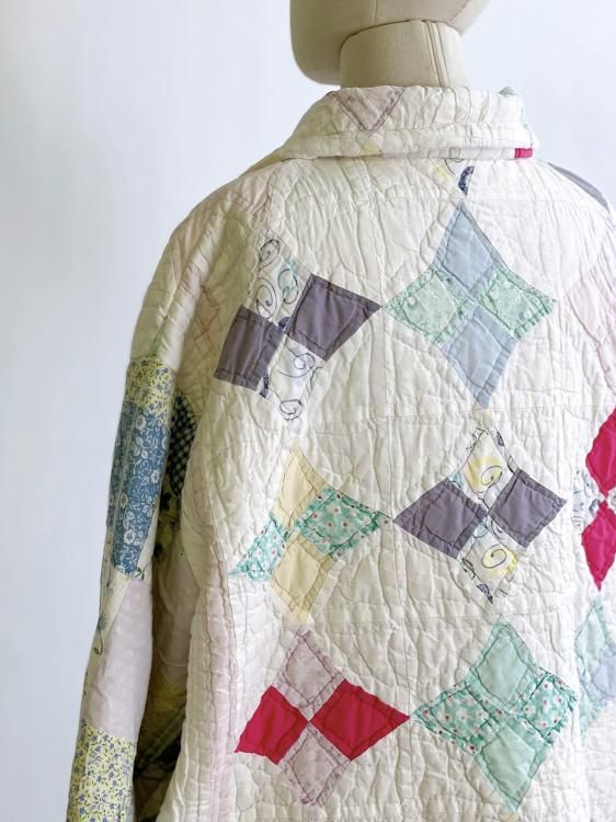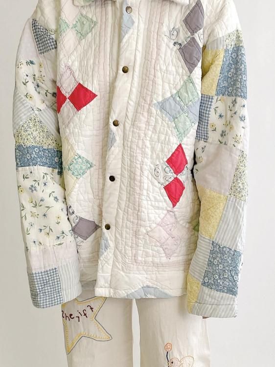 "Upcycle" VINTAGE patchwork fabric jacket -Diamond pattern-
