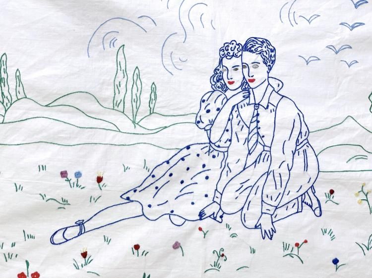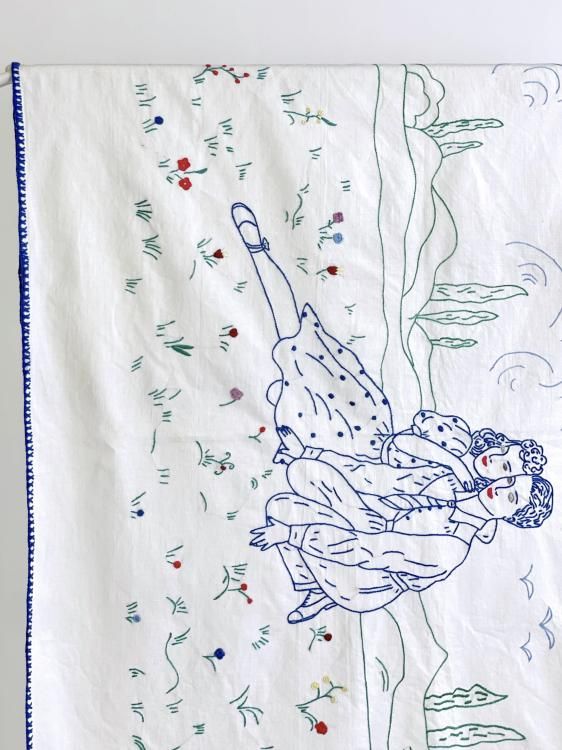 Vintage embroidered cloth / 79×130cm