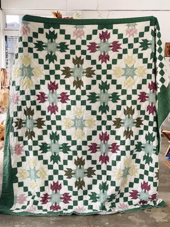 Handmadeのパッチワークが温かみを感じる大判なマルチキルト