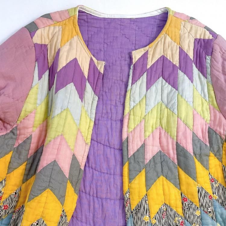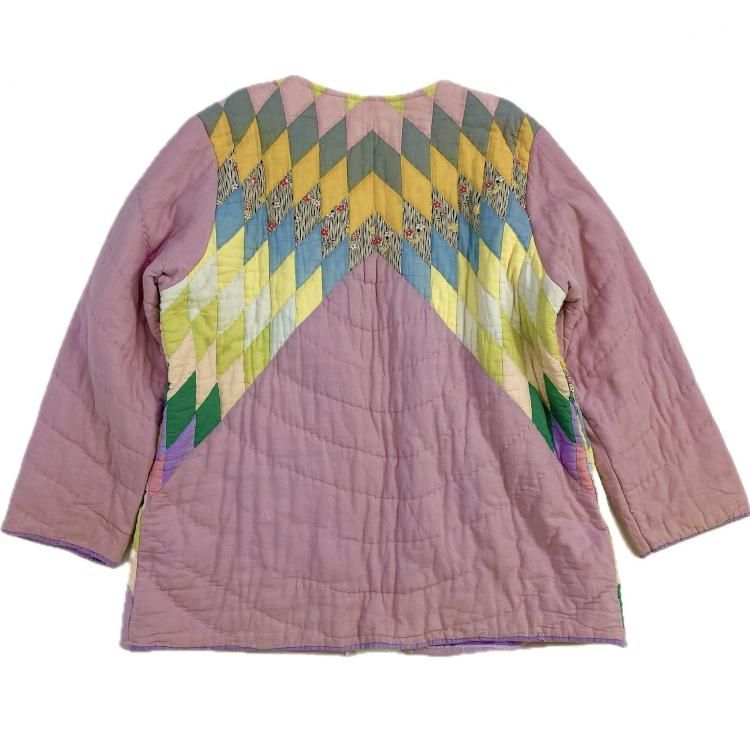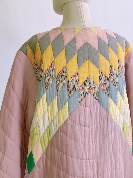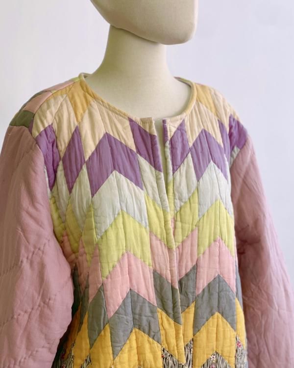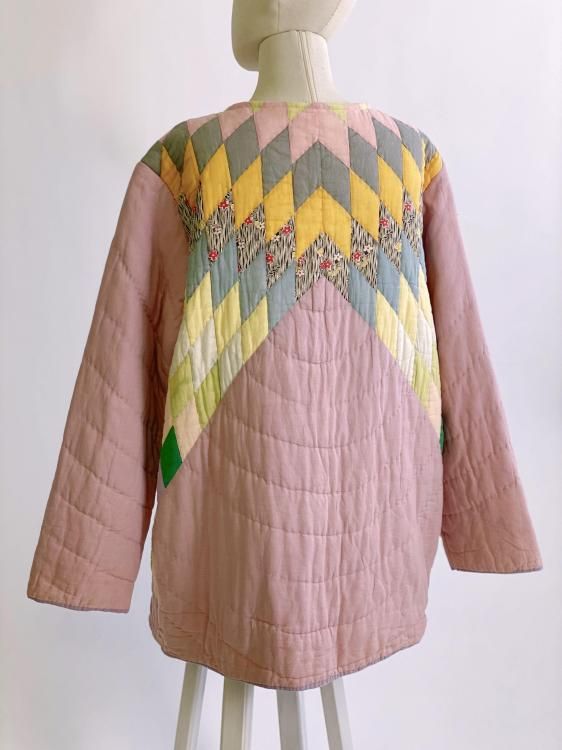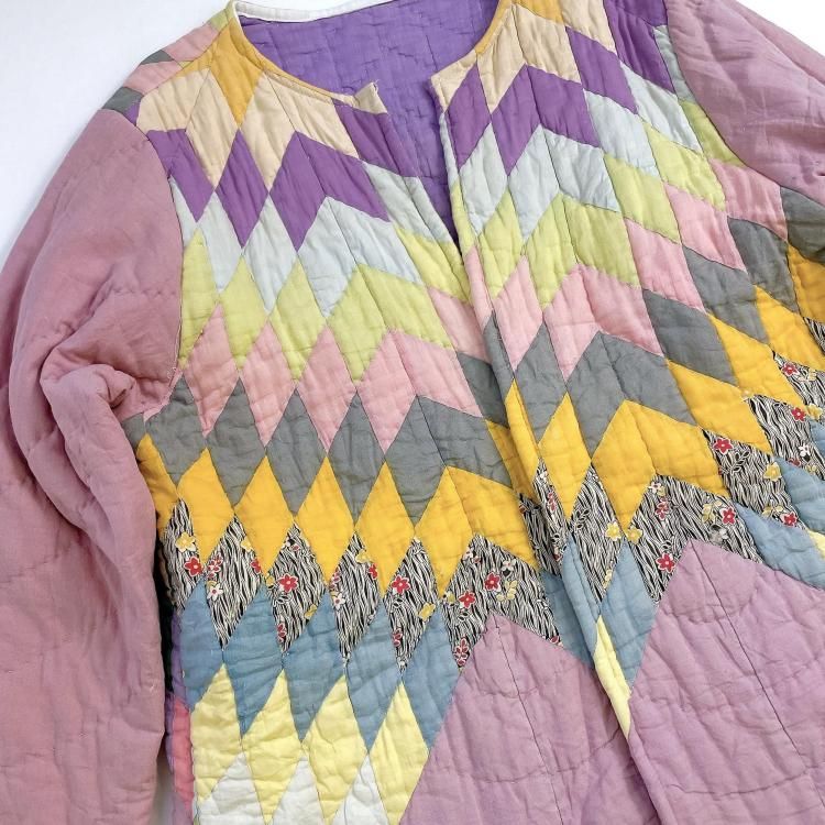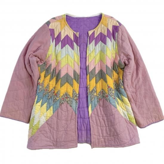 "Upcycle" VINTAGE fabric patchwork jacket -Diamond pattern-