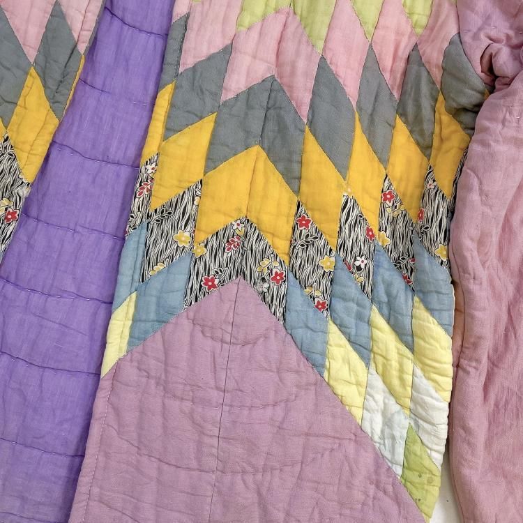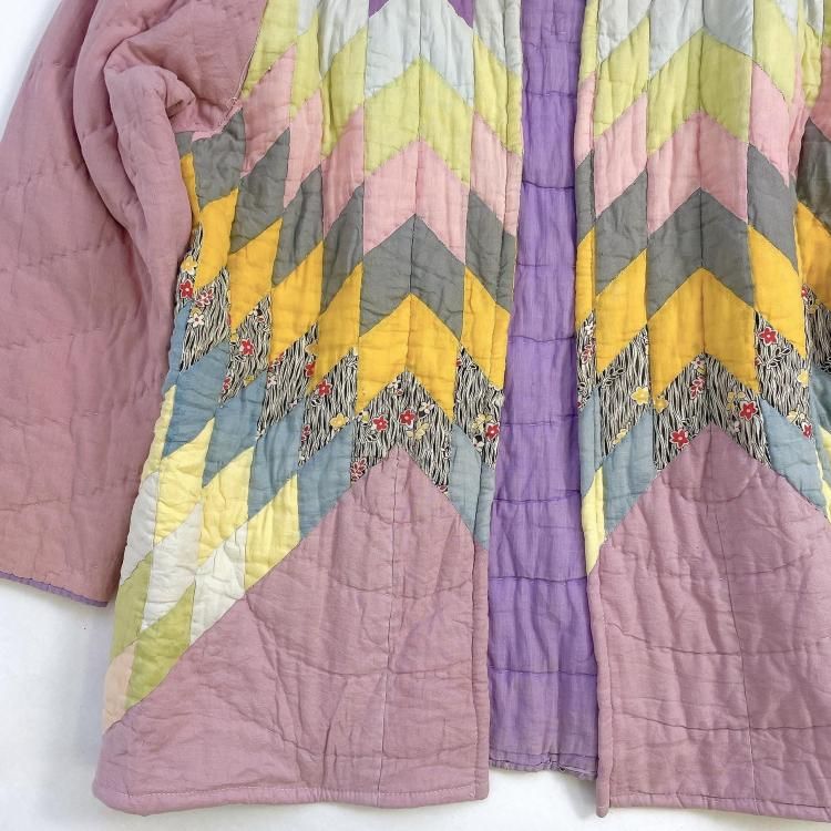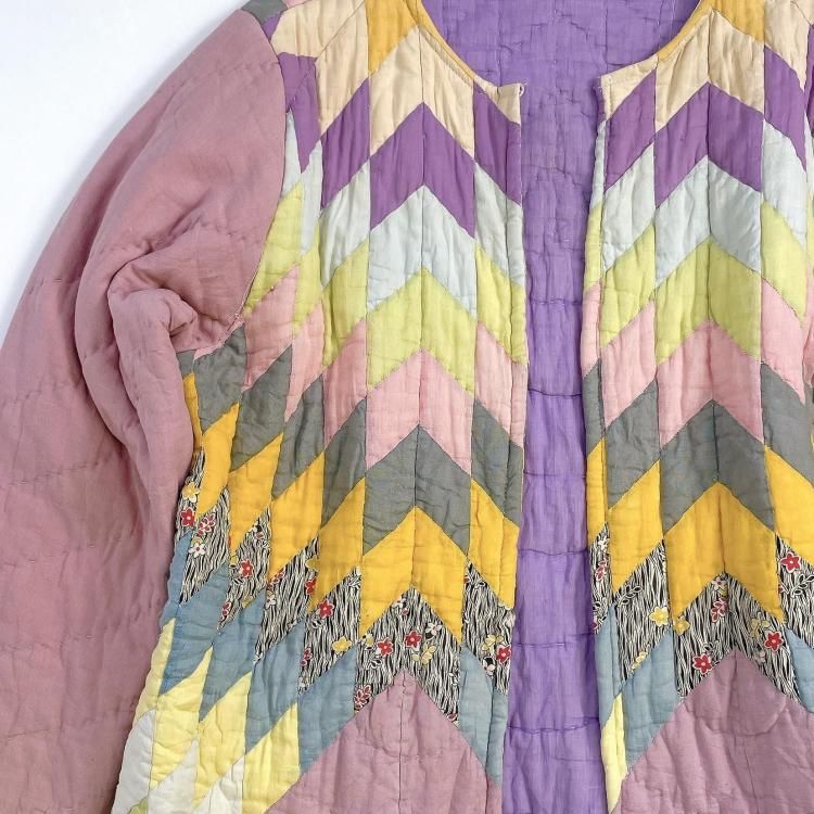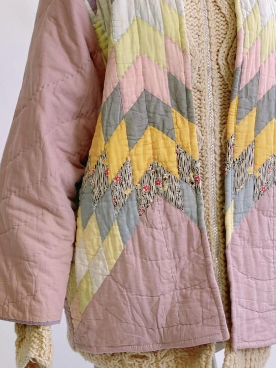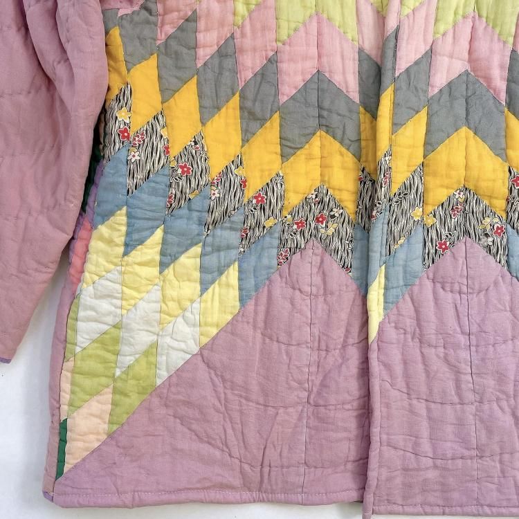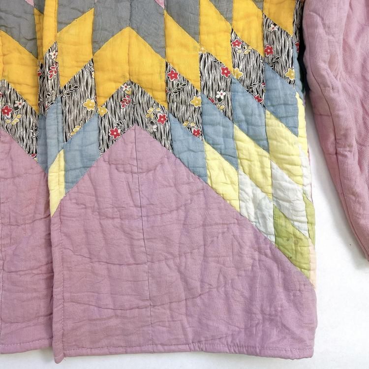 "Upcycle" VINTAGE fabric patchwork jacket -Diamond pattern-