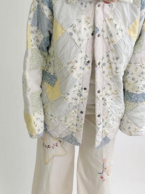 さまざまな模様のパッチワークが施され、世界に一枚のアップサイクルシリーズです。