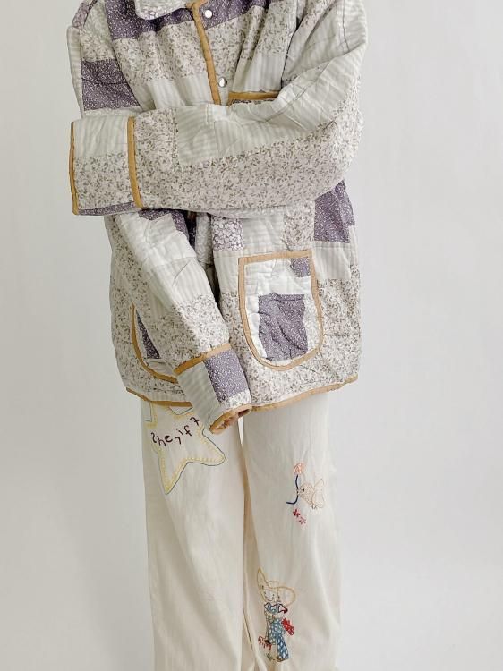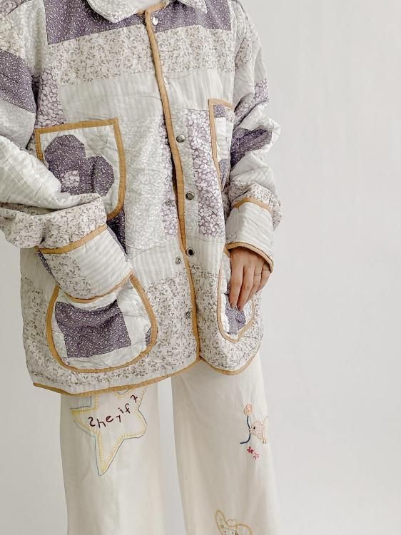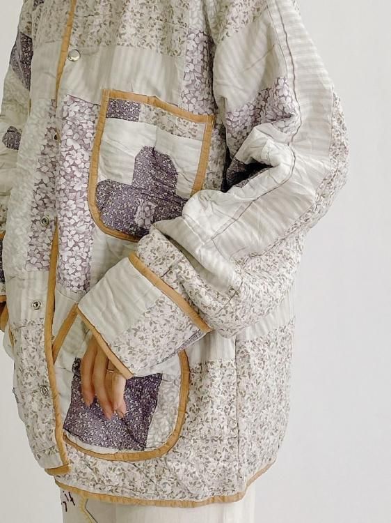 さまざまな模様のパッチワークが施され、世界に一枚のアップサイクルシリーズです。