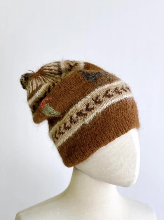 VINTAGE Mohair pom-pom knit cap
