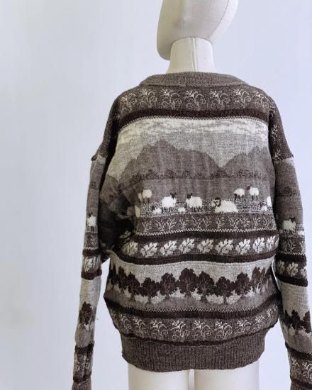 VINTAGE wool knit "Sheep grazing"